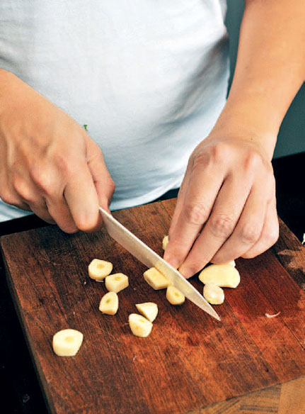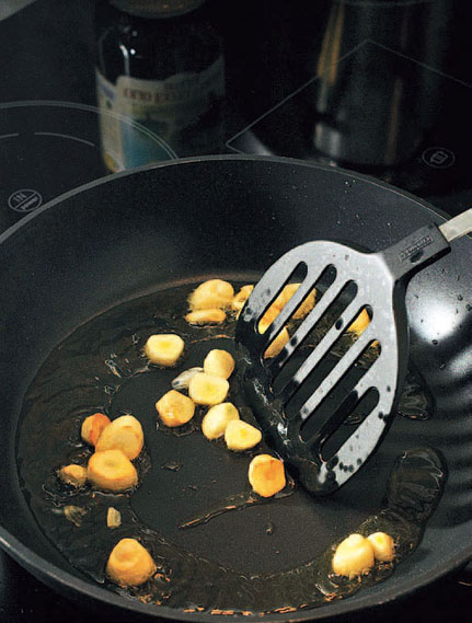 7.以蒜片起锅,转金黄后捞起备用。(两分钟)