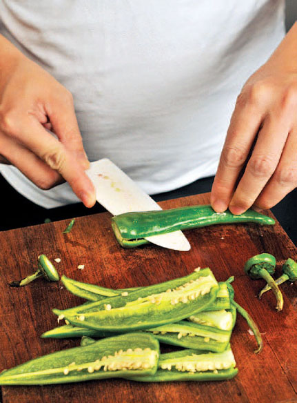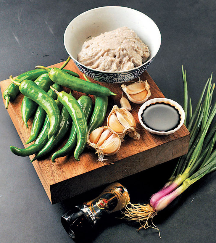 最近有机会在一个小型派对里负责部分菜式,得知总厨有空为座上客,我不怕丑地班门弄斧,以酿青尖椒单挑大梁,还知道总厨好蒜头,刻意以厚切蒜片起锅,既有蒜油慢煎青椒亦有香蒜粒粒做配角——使出“生平绝椒”,博得总厨满意点头,没有失礼,幸甚喜甚。