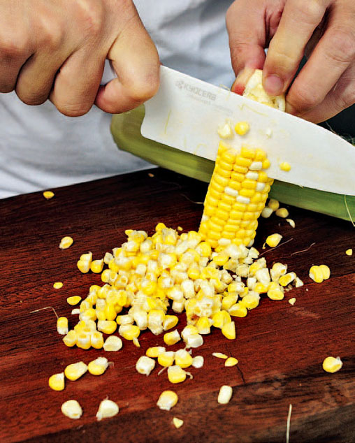1.先将粟米去衣,以刀把粟米粒原颗切出备用。(三分钟)