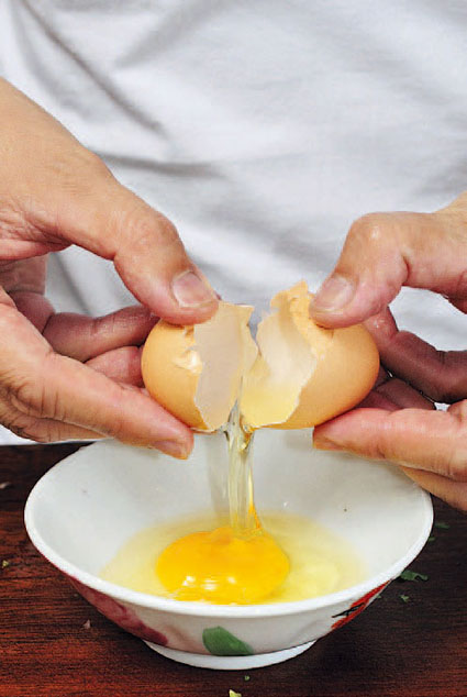 4.将两只鸡蛋拌打成蛋液。(一分钟)