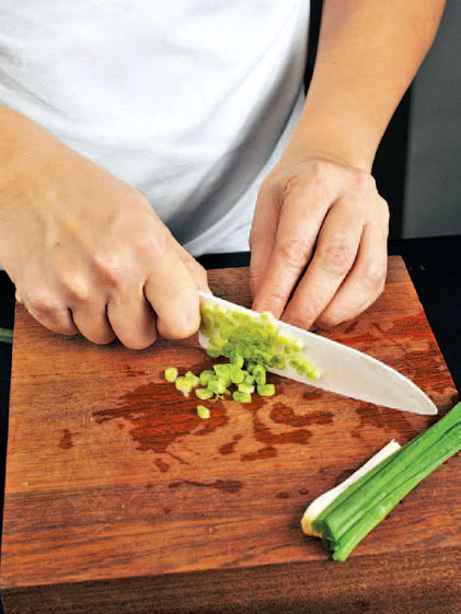 2.将葱洗净,取最嫩之中段切极碎。(两分钟)