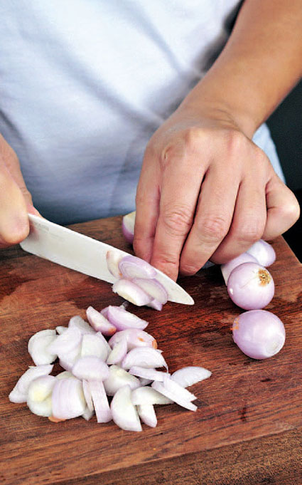 2.煮饭的同时将红葱头去皮洗净切丝。(三分钟)