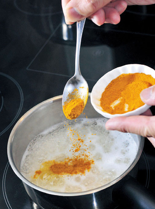1.先将白米洗净,煮饭时把半匙黄姜粉与米及米水混好,加盖中火煮约十五分钟,饭熟转极小火继续保温。(十五分钟)