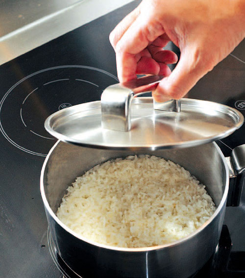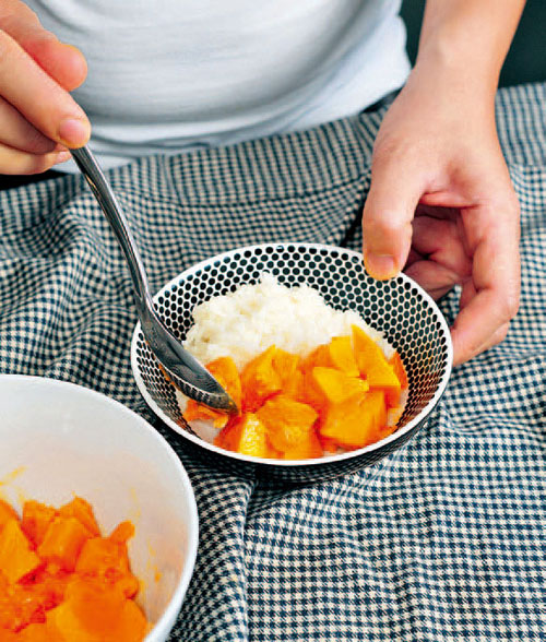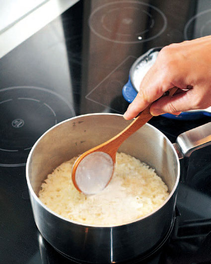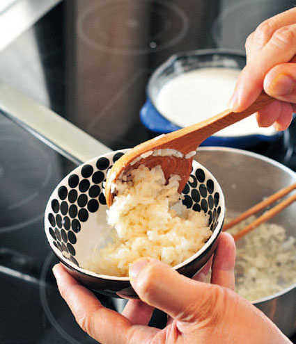 7.将两大匙调好味之椰浆拌进糯米饭中。(两分钟)