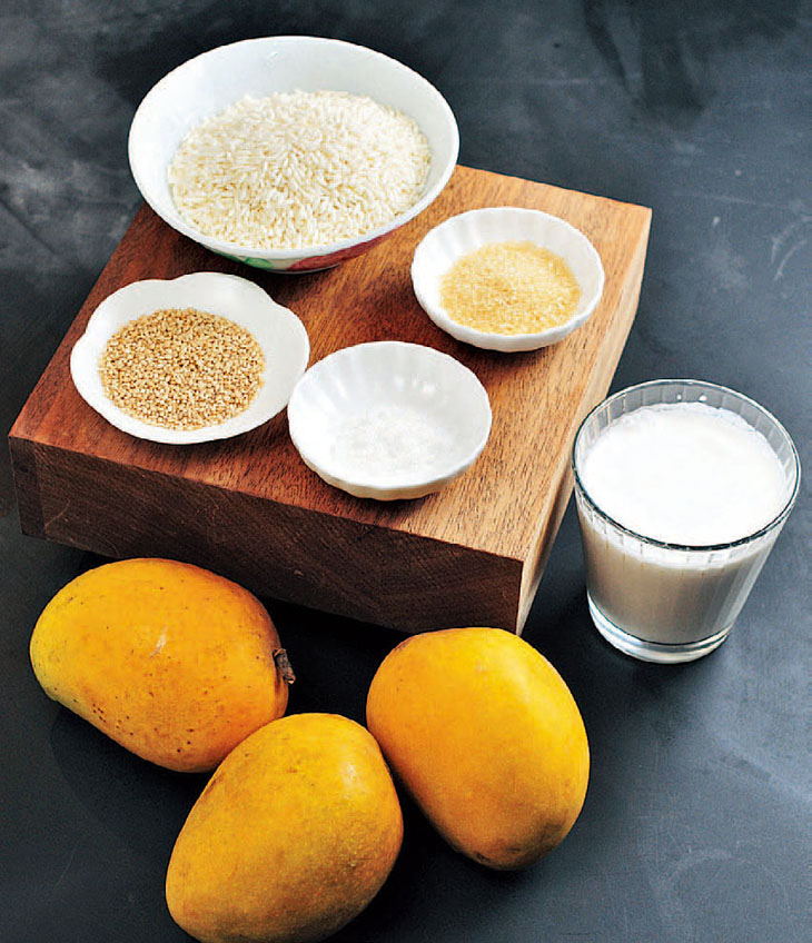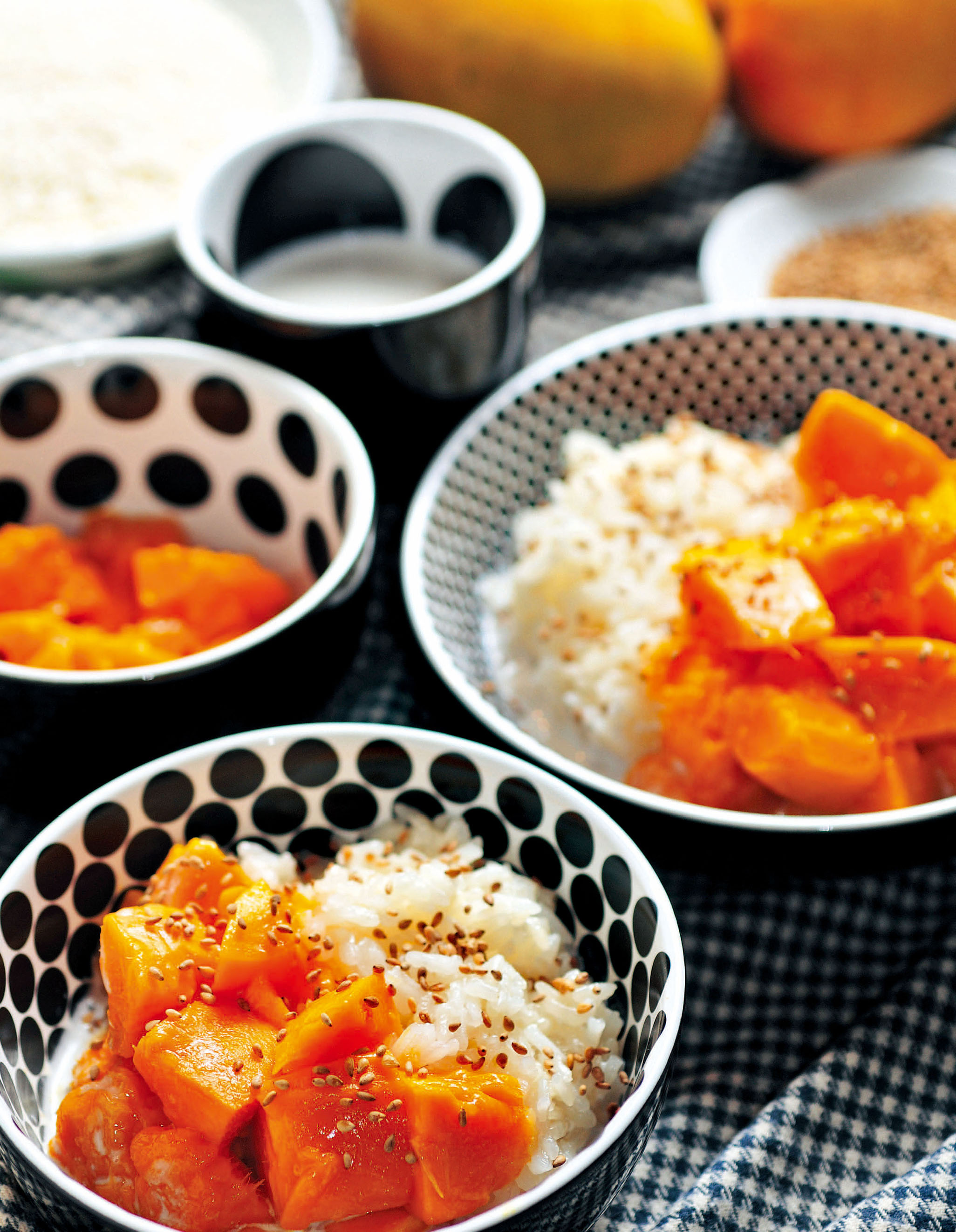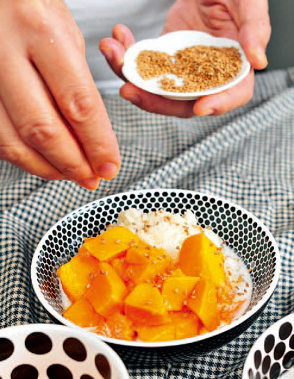 11.于杧果饭面上撒满烤好的芝麻,色香味全,还等什么!(半分钟)