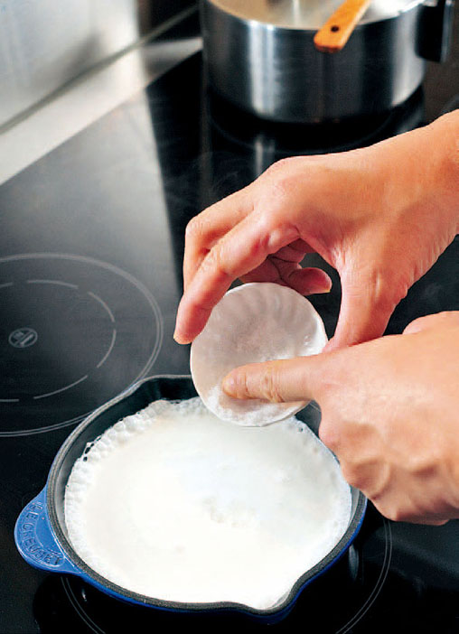 10.撒进已调味的椰浆于碗里。(一分钟)