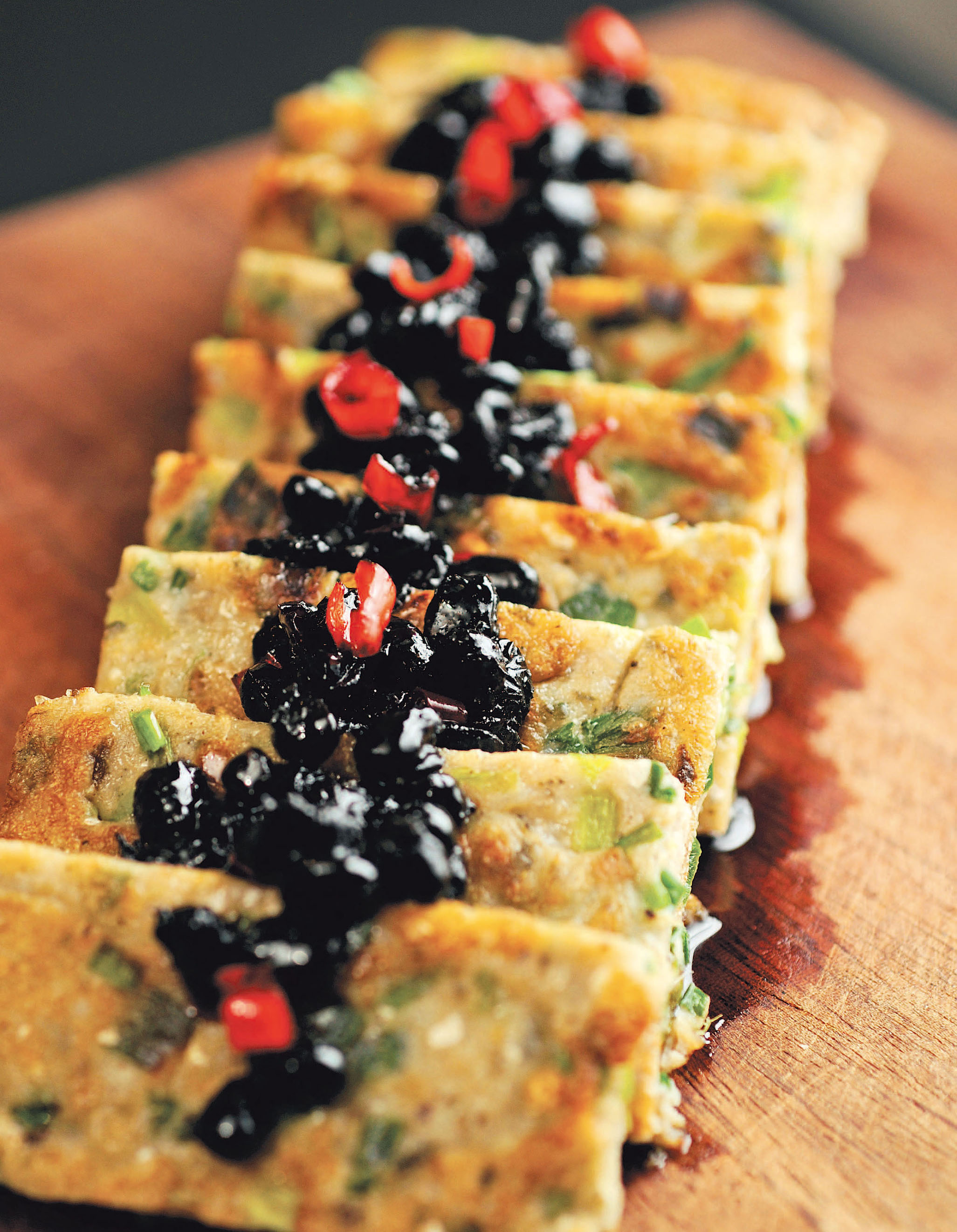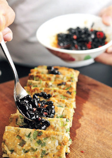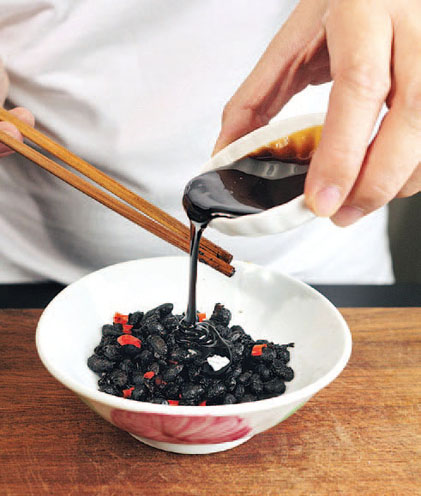 10.以黑糖糖浆拌匀辣椒豆豉成调酱。(一分钟)