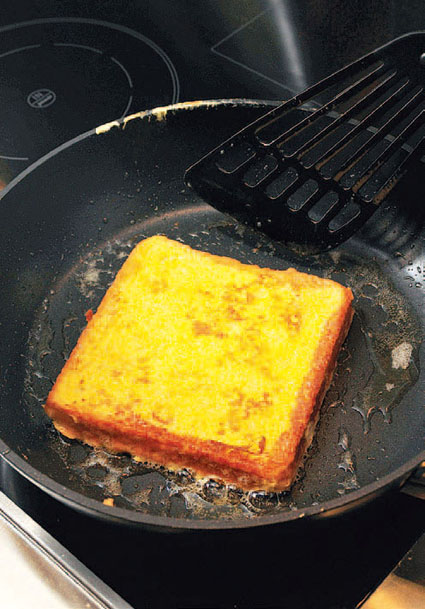 8.以中火把面包两面煎至金黄微焦。(五分钟)