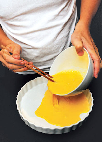 6.将牛奶蛋浆转置大碟中。(半分钟)