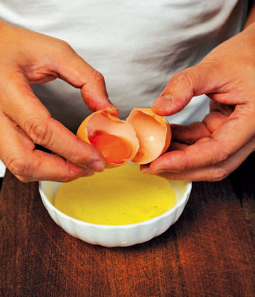 1.先将鸡蛋敲开,取蛋黄。(一分钟)