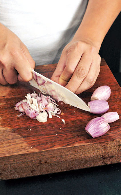 2.红葱头去衣洗净,切极碎。(三分钟)