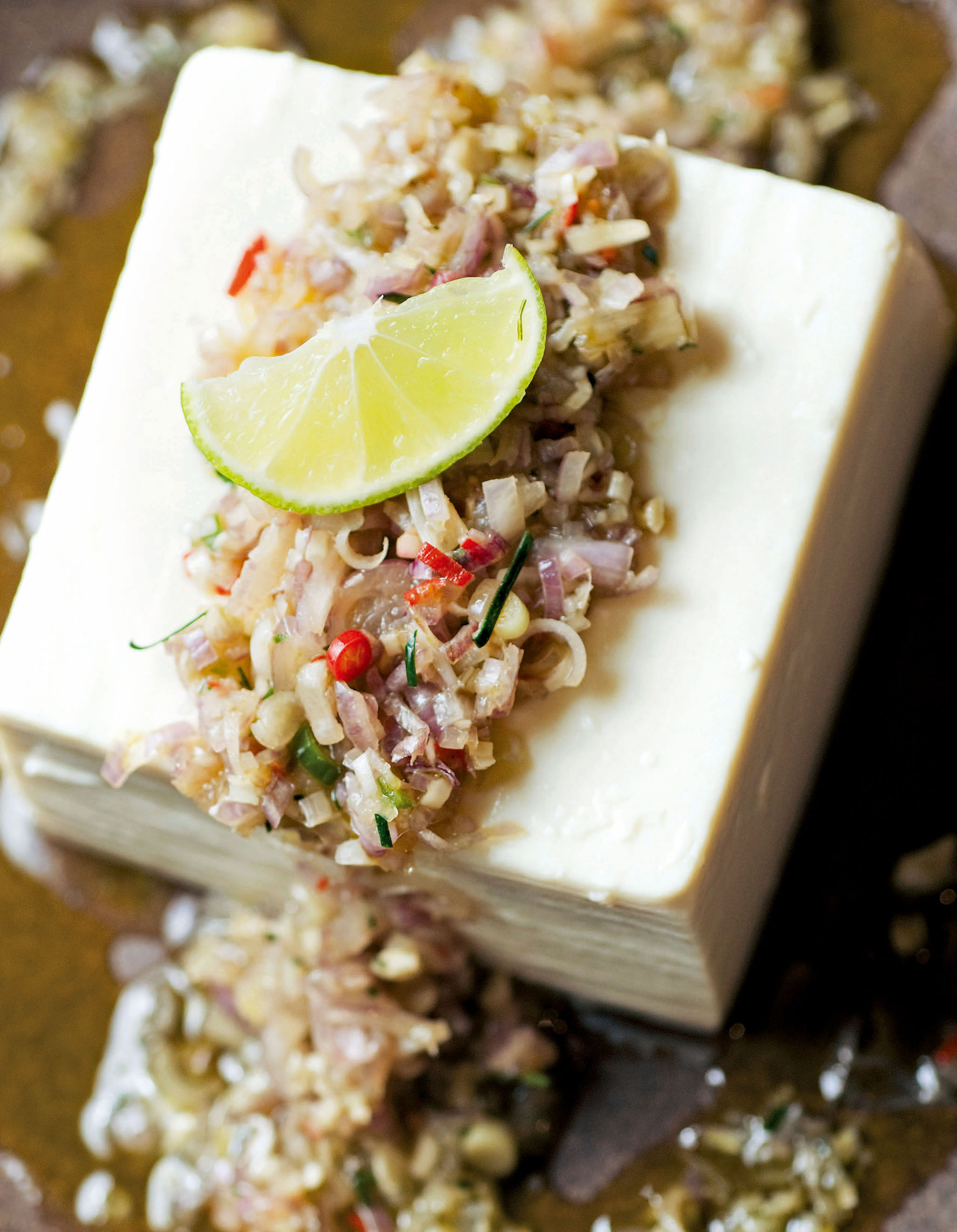 说来凑巧,平日一天到晚流离浪荡飞来飞去的我,倒真是没有这样频繁地往南洋诸国进发。可是今年头几个月,却接二连三地因公因私往新加坡两次、槟城两次、吉隆坡一次、巴厘岛一次,完全地把自己放纵在南洋氛围和味道当中。在所到处的绵延海滩上和深山老林里,如鱼得水如鸟归巢——其实南洋岛国印度尼西亚也正是我的外祖父母的第二故乡,所以这明显地也是一种寻根的感召。那些儿时外祖父母坚持手做的家乡味道,得以在异地的餐桌上再次鲜活重来,叫我一边吃一边悸动不已,就像面前与豆腐拌吃的参巴(Sambal)蘸酱,也是印度尼西亚餐饮上不可缺少的。大师提示南下,原来不只让我晒出一身古铜色的皮肤。