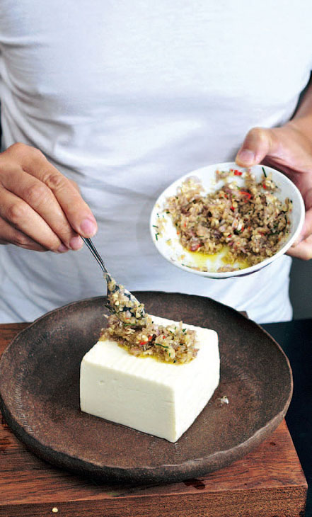 7.将酱汁置于豆腐上,清淡鲜辣一口共尝。(一分钟)