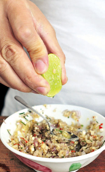 6.再挤入少许青柠檬汁提味。(半分钟)