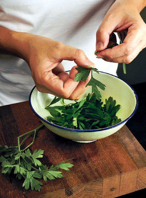 1.先将芫荽洗净抹干,摘出叶片。(两分钟)