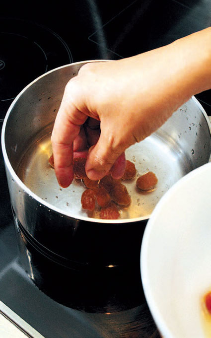 2.将半杯水煮沸,把桂圆放进去煮软。(三分钟)