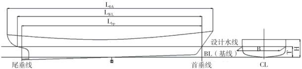 吃水(T):舯剖面处,设计水线至基平面的垂直距离。船体主尺度主要参数如图2-2所示。