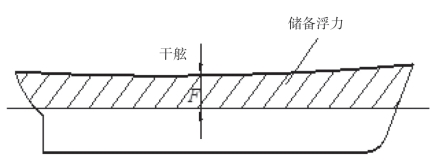 船舶都具有一定的干舷(F),如图2-3所示。其作用就是保证当船舶破损进水吃水增加时,不至使水漫过水密甲板,也就是给船舶留有一定的储备浮力,干舷越大,储备浮力也越大。