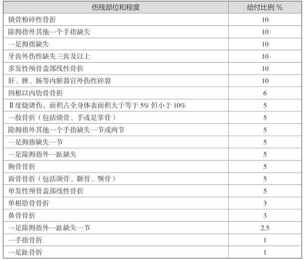 表7-1 人身保险补充伤残项目与保险金给付比例标准表