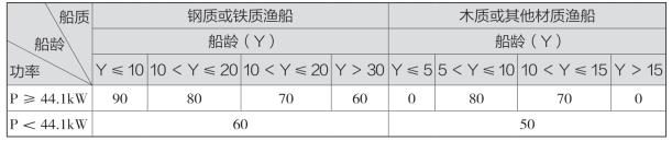 我国渔船标准化程度低,准确核定渔船价值比较难,实践中多用建造价格、评估价格、市场价格等方式进行核定。价值核定后,具体承保时需综合渔船的船龄、船质、主机功率确定承保比例上限,由船东和协会最终协商确定保险金额(见表7-2)。