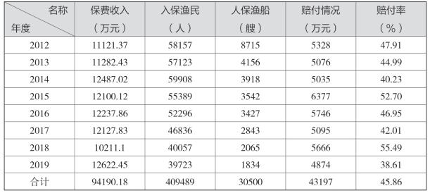 协会长期保费收入稳定在每年1.2亿元左右,累计参保渔民近37万人(次),参保渔船近3万艘(次),为全省提供渔业风险保障1080亿余元。详见表8-1。业务范围从海洋捕捞领域向公务执法船、内陆渔业、休闲渔业等领域拓展,实施各级财政补贴3225万元,减轻渔民会员缴费负担,逐步为全省渔业安全生产筑起了坚实的风险保障线;经多年发展,构建了从近海到远洋、从捕捞生产到休闲渔业保障网络,渔业互助保险已成为我省渔业安全管理工作的重要组成部分和渔业防灾减灾体系的重要环节。