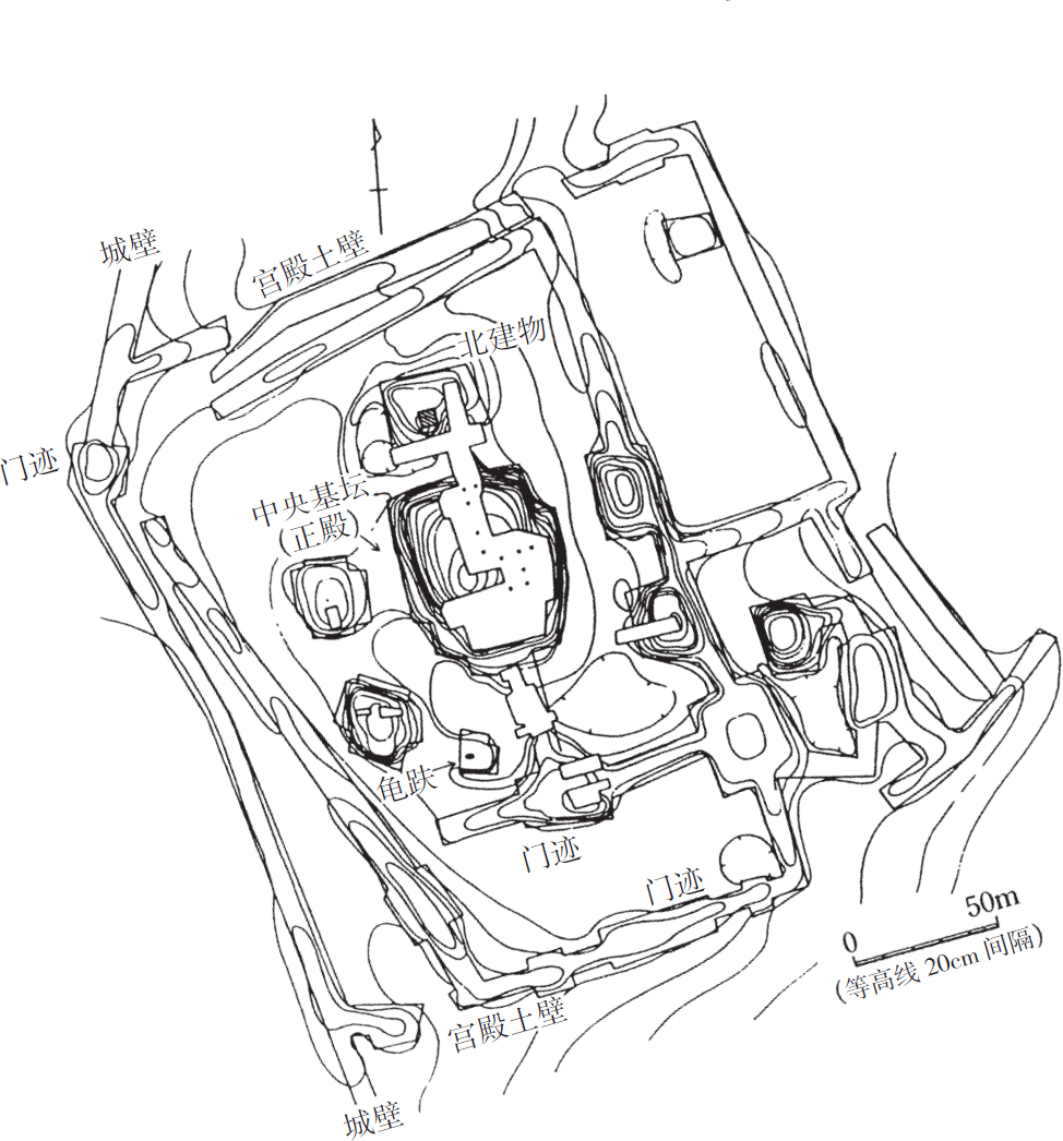 巨石方形底座已经整齐地排列在地面周围散落着砖、瓦等建筑材料