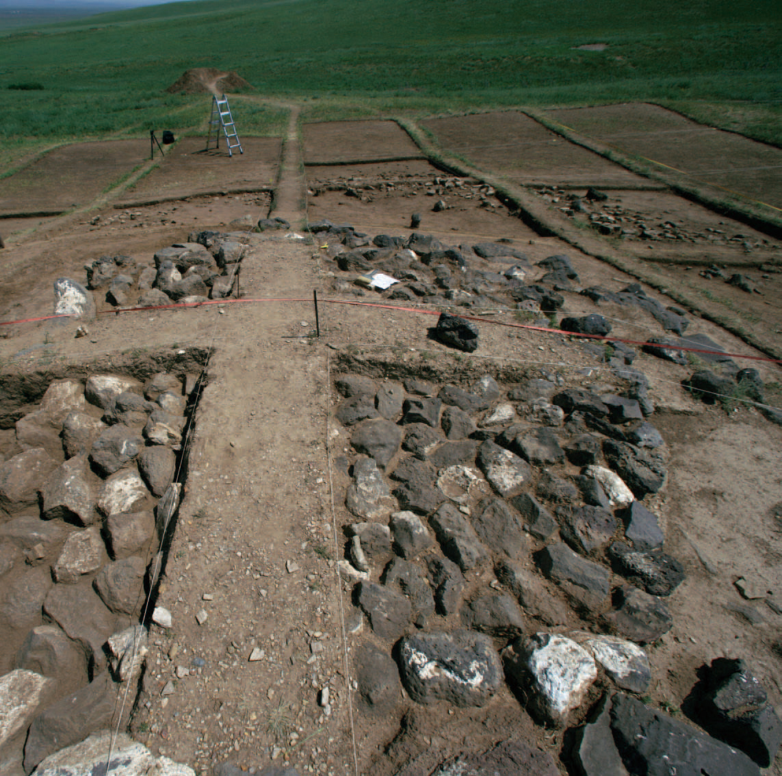 遗址的堆积并不厚,我数了数共布有5米×5米的探方36个。一看布方的办法就知道是中国人做的,国外好像不大用这样的探方,主要在坐标上控制遗址。