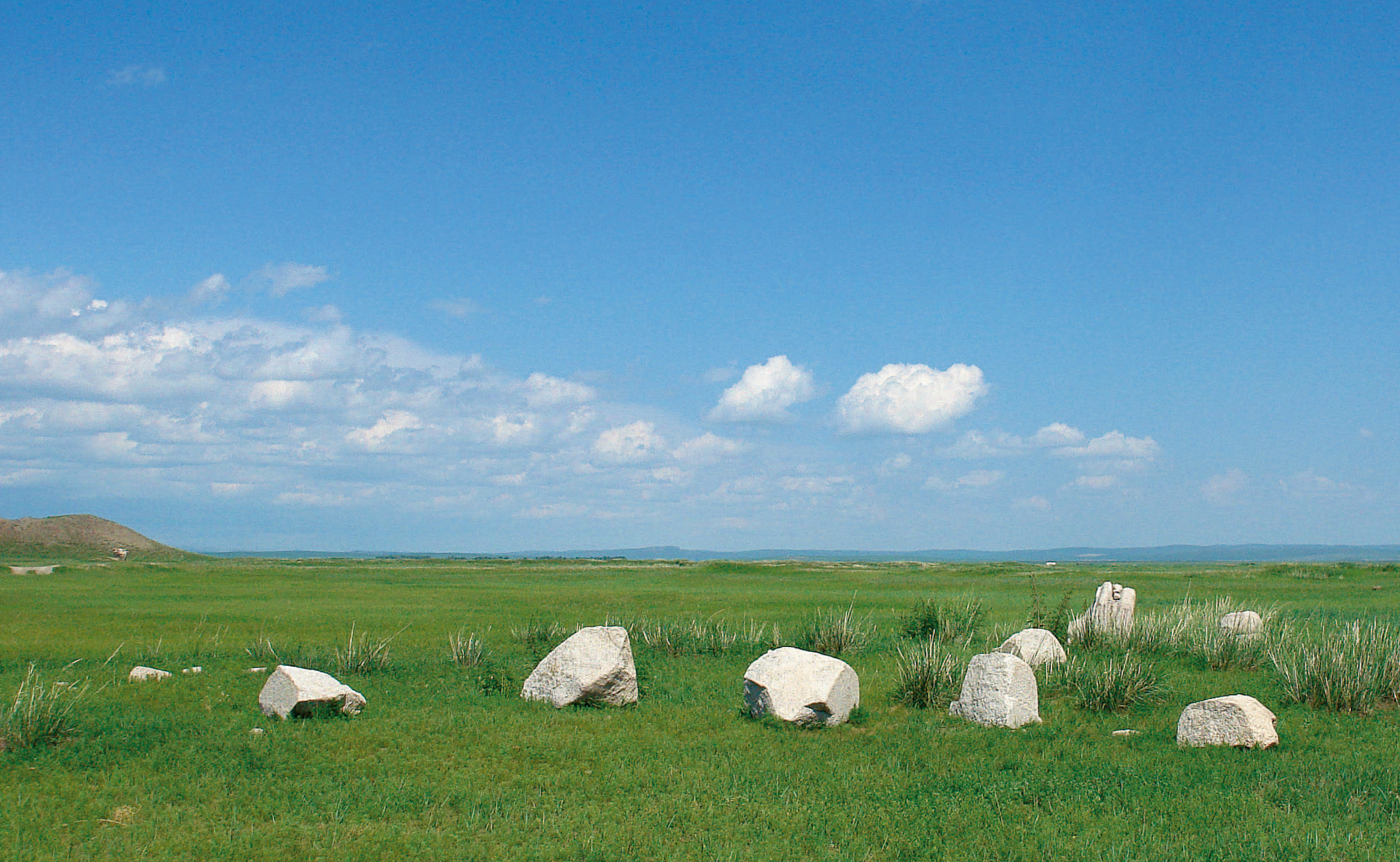 汽车在草原上开了没多久,就到达了目标地——回鹘牙帐城。古城原来叫额尔多巴立克(Ordubulik),现在的名称是卡剌巴拉克斯(Karabalgos)。抵达后,我们并未直接进古城,而是向南驶去,在一堆石碑前停下,这时是15点45分。