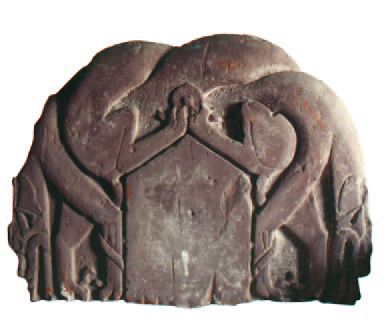 类似的推测,在此后获得某种程度的证实。某年,我随一考察团赴吉尔吉斯,在布拉那古城遗址博物馆中见一唐代碑额,碑身不存。红砂岩质,额首亦有两动物两尾蜿蜒相交,低头突舌,前爪着地有力。大约与布古特碑碑额形象近似。吉尔吉斯民族构成复杂,早期操突厥语的人和一些畏吾儿人混合,后来,其成分中包含有蒙古诸部。唐代受突厥汗国影响很大,尽管这里属于唐朝的势力范围。吉尔吉斯亦为草原民族,工匠大概有类似的观察,碑额年代应在唐朝。构图相一致的碑额,除去繁缛的细部,留下简洁清晰的动物轮廓,风格上的共性显示出游牧人趋同的造型,给布古特碑一有力的佐证。