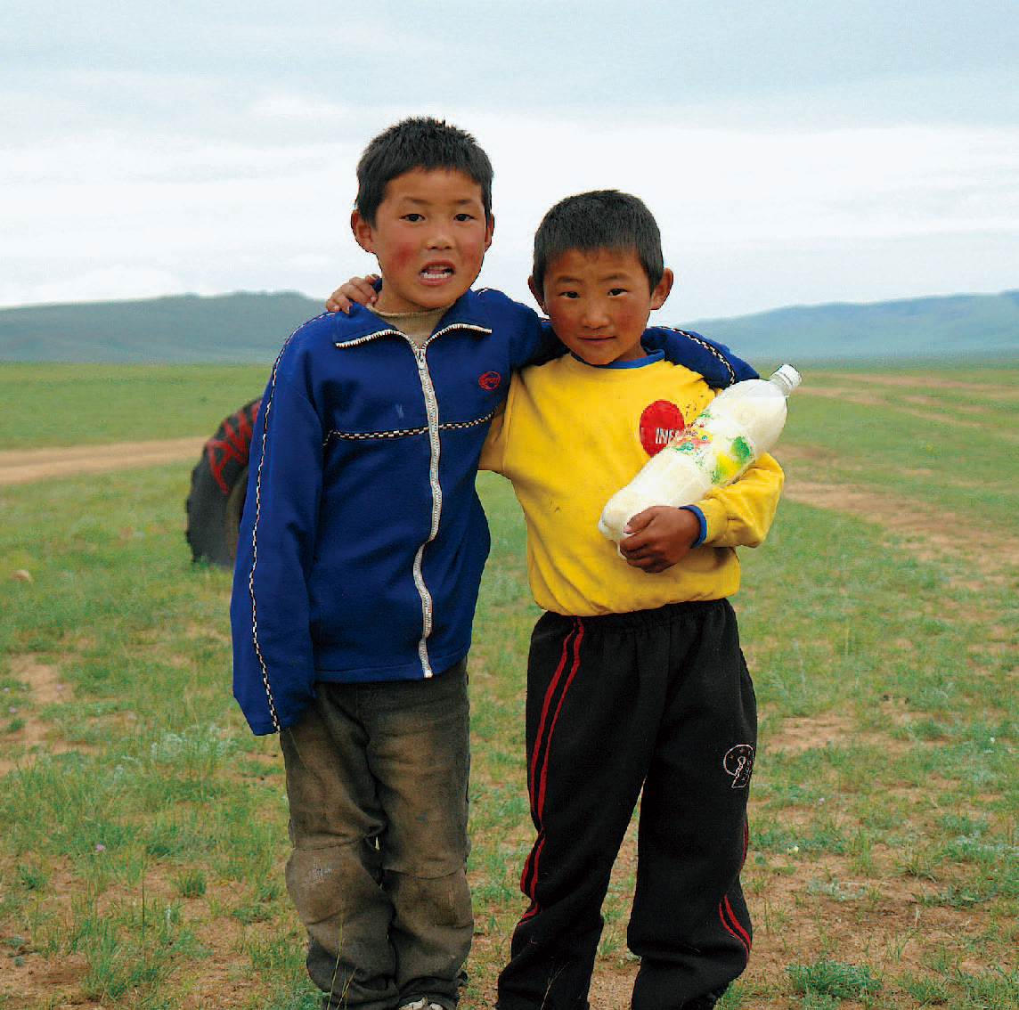 路边竖着一个破轮胎,上面用红漆写着几个字,旁边站着俩小孩,一高一低,大的不过七八岁,小的也就五六岁的样子,抱瓶酸奶。车停下,我递上一张五百图的蒙币,示意要买酸奶,她摆摆手却并不接。我又拿出几张,嘎那从中拣出1000图,递过去,小孩找回200图,原来要800图一瓶。比哈拉和林集市要贵,瓶子却大很多。哈拉和林买的那瓶马奶在车上滚了几天,无人问津,这一瓶却你一口我一口,很快被喝得精光。