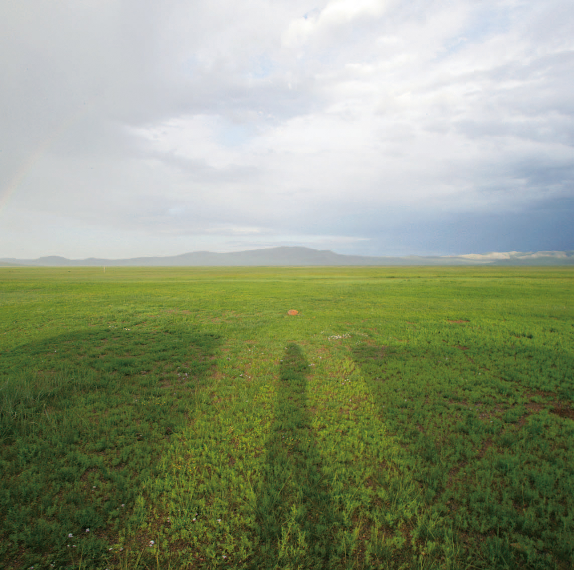 尔冬强肩扛三脚架,并未随众人进入车中,而是构思一幅奇妙的彩虹画面。东面草原上,两条彩虹横贯大地,彩虹中央远山如黛,白云翻动。瞬间,西边日出,透过云缝射出光芒,将两车投出长长的阴影。尔冬强在两车之间,光线正好从后面射过,构成画面的前景。在固定的画面中,摄影家本人显然是位不速之客,他挤进画面中也被收入其中。两车及中间摄影者的阴影作前景,中景是荒原,上天空挂着七色彩虹,远景是远山、白云组成的画面。构图非常有气势,即使在广袤无垠的蒙古草原,画面也要聚集在有限空间里,才会有感染力。他近乎完美地展现了荒原上的长虹瞬间,这样的画面构建能力,不仅仅需要眼睛。很早以前,一位著名摄影家曾告诉我:摄影是一门想象的艺术,你能想到什么,就会拍到什么。