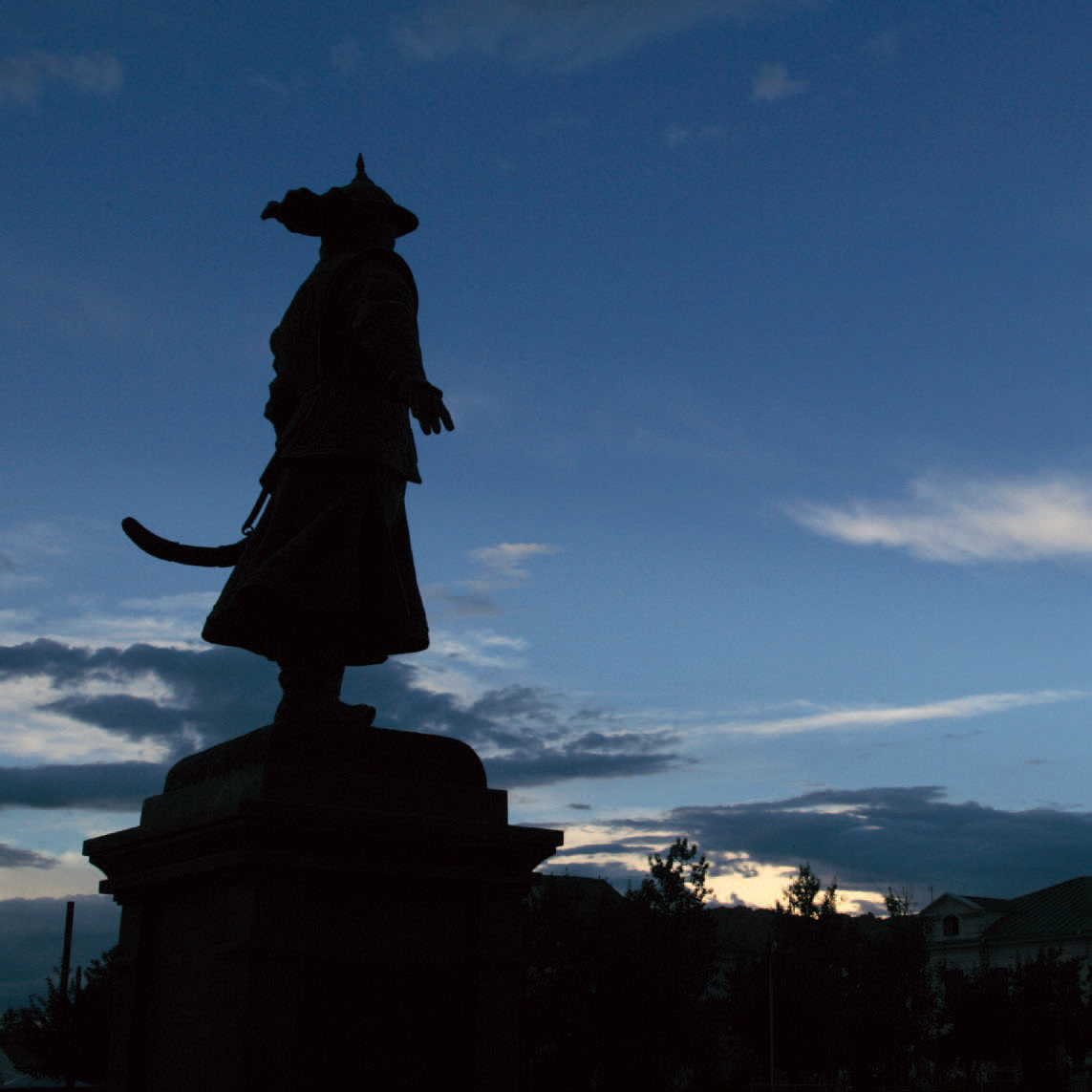 噶尔丹的青铜像矗立在广场上,底座上刻着他的生卒年份“1644—1697”及几行蒙文。我并不了解噶尔丹与科布多的关系,只是对科布多人如此推崇他有点好奇。准噶尔部大汗噶尔丹在清朝康熙年间举兵抗清,号召蒙古人暴动,影响很远,许多蒙古部落都在暗中响应,探听动静,打听消息。在噶尔丹被剿灭后,又纷纷回归,效忠清廷。