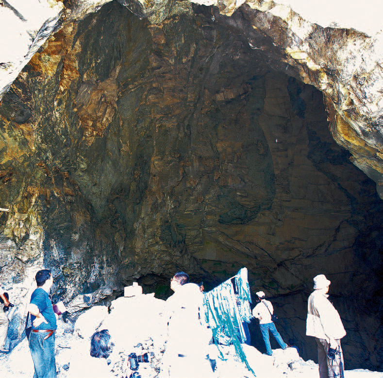 岑格里赫岩洞,北纬47°20′820″,东经91°57′200″,海拔1502米。山洞挂在半山腰中,距地面有五六十米。碎石小道,引领我们向上攀登。洞口,遇见一位蒙古导游向敖其尔打招呼。导游与敖其尔聊起山洞里的内容。山洞是1.6万—2万年间,旧石器时代晚期人类居住过的遗址。本来很高,地震使一些地方塌毁。山洞中曾经找到过一些石器,岩石壁面上用赭石颜料绘制岩画,有鸟、鹿、羊等动物。蒙古导游带着两位德国中年妇女,前来参观。