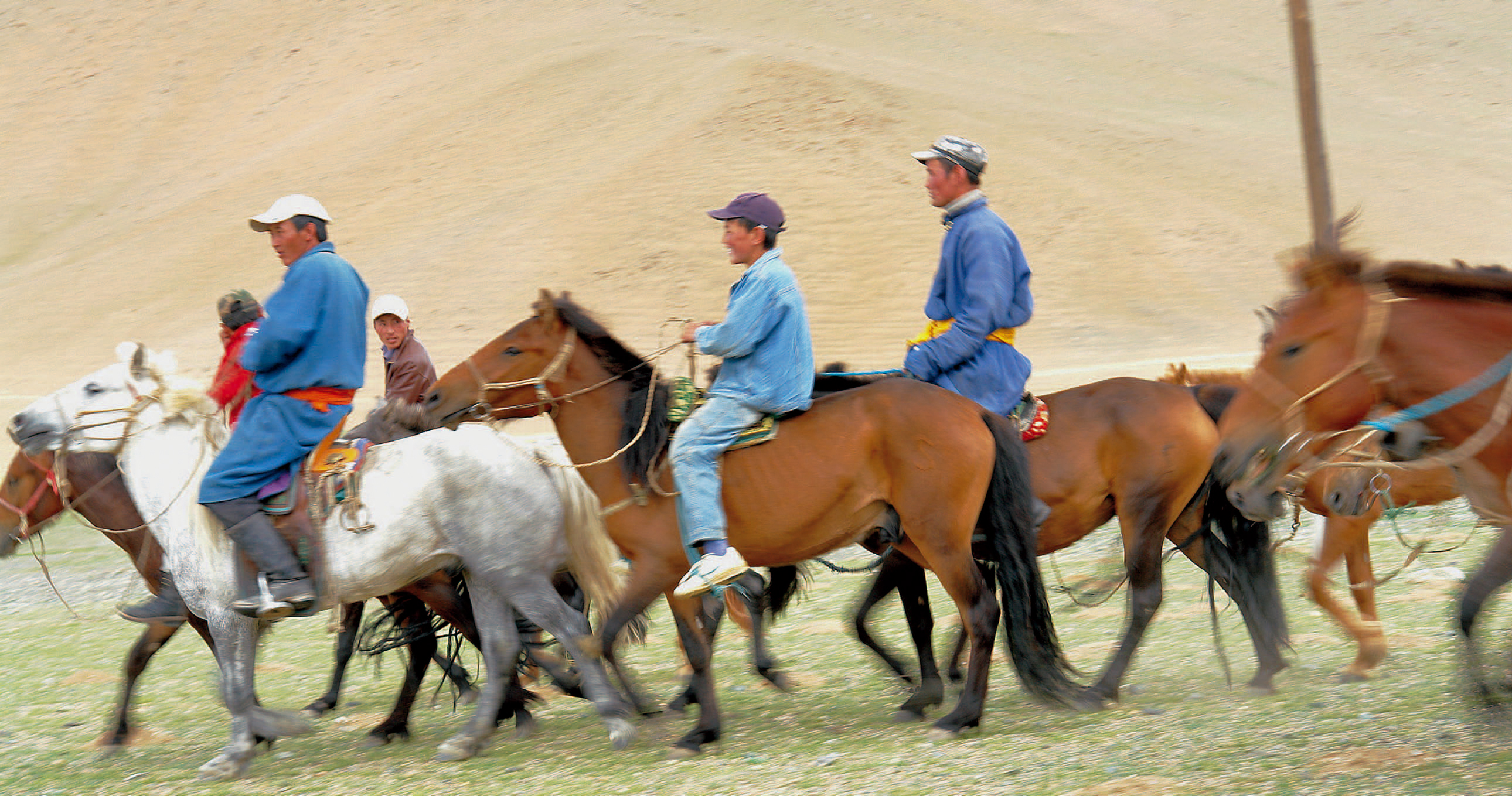 在我们看马的工夫,几个蒙古人突然翻身上马,没有丝毫犹豫,策马疾驰,瞬间消失在远方。我注意到他们用马棒打马,而不是像一般游牧人用马鞭。