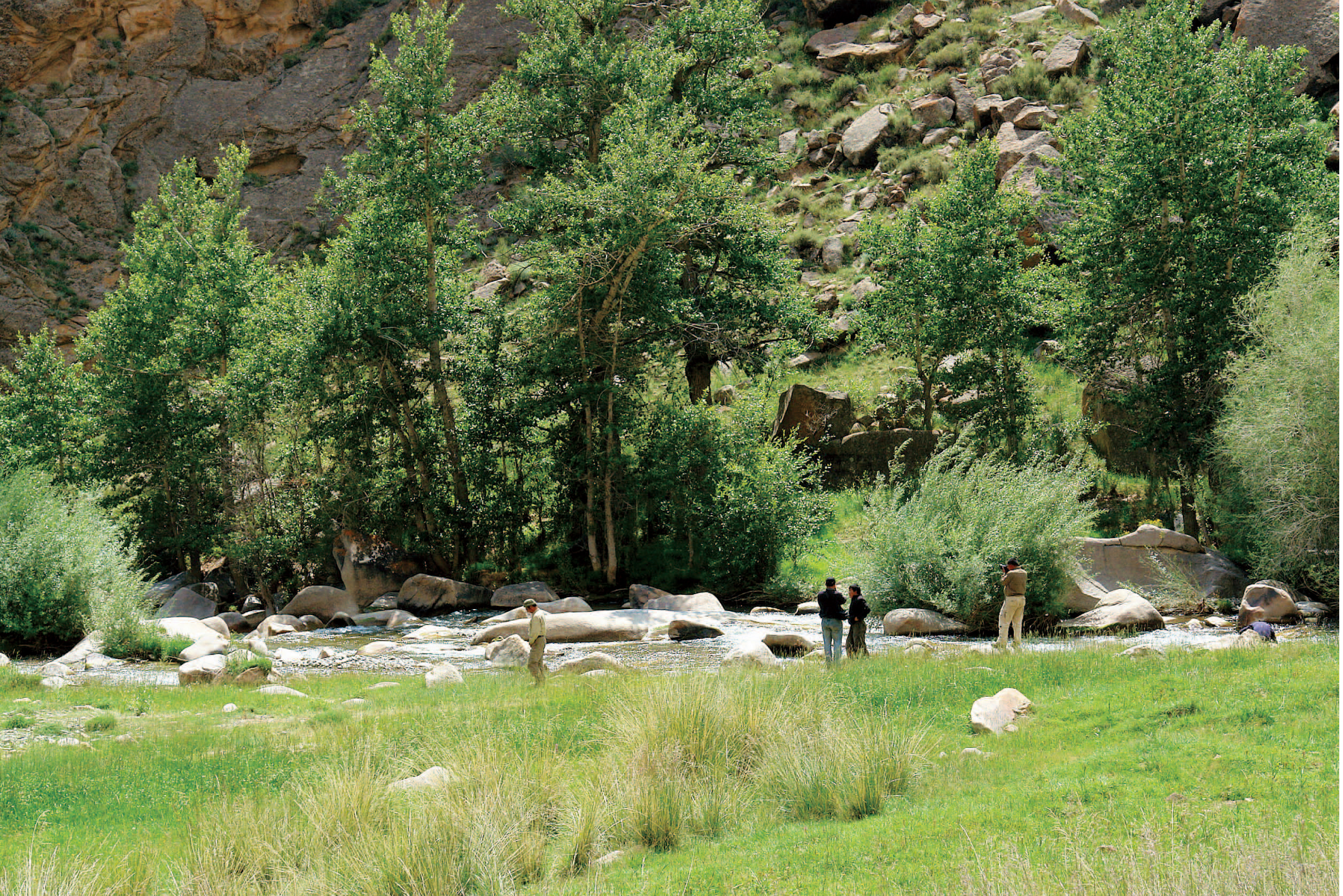 正在这时,前车又一次坏了,经过十多天长途跋涉,机器也和人一样,大概已到了极限,损坏的频率不断增加,由过去每天一两次,变成每数小时就有一辆抛锚。下车后人们又一次拥向河边,动作麻利者已赤脚下水。溪水在乱石间穿过,白杨树长得粗大笔直,榆树的树冠垂下,河面虽然不宽,水也不深,水流就着地势湍急直下,看似有几分力量。