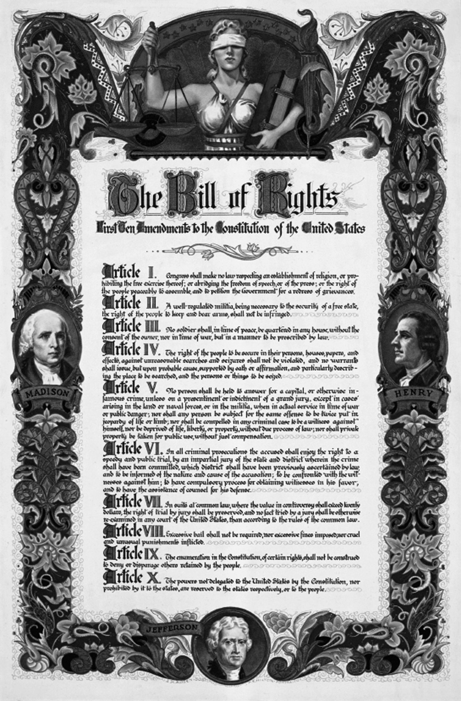 《权利法案》,即宪法修正案的前十条,是在1791年依法被大部分州通过之后,成为美国宪法的一部分的。