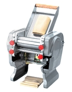 压面机又称压片机、滚压机,由机身架、电动机、搅拌轴传送带、滚轮、轴具调节器等部件构成。它的功能是将和好的面团通过压辊之间的间隙,把面团从厚到薄地轧压成所需厚度的皮料(即各种面团、卷、面皮),以便进一步加工。压面机的作用是使面团中的面筋质进一步形成细密的面筋网络,并使面团达到一定厚度,具有可塑性、延伸性。