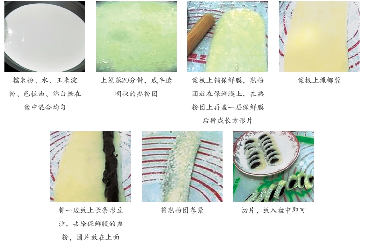 ④椰蓉可以用熟黄豆面或者其他可以直接入口的材料代替。