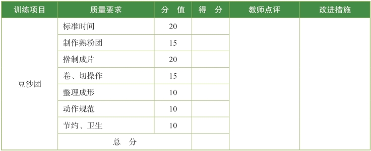 熟粉团的类型繁多,其中豆沙团是日常生活中较常见的熟粉团。学习豆沙团是学习其他熟粉团的基础,同时也能够让学生掌握熟粉团的成团技法。通过对豆沙团的学习,学生可以举一反三,制作“如意凉卷”“驴打滚”等制品。