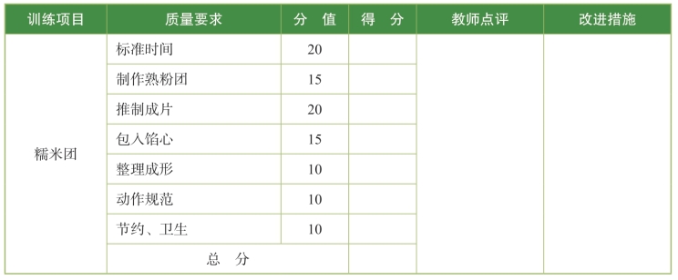 糯米团要求:色泽洁白,馅心居中,厚薄均匀。