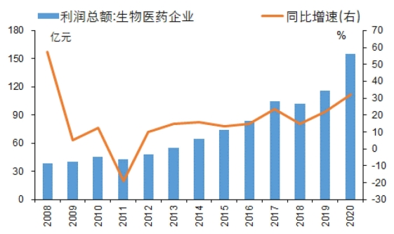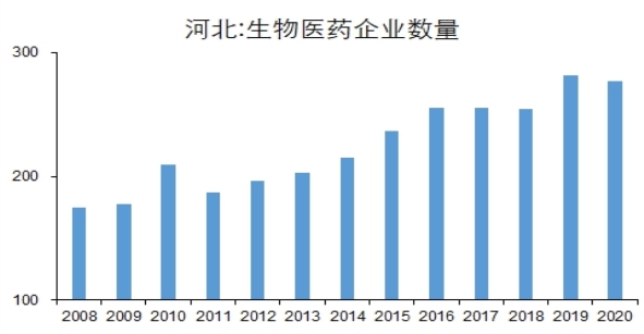 河北省生物医药产业集中分布于石家庄国家生物产业基地,作为传统生物医药生产大省,河北省近些年大力支持省内医药产业发展,经过各级政府的不懈努力,河北省生物医药产业已经具备较大的规模,在国内已形成较强的影响力。从生物医药企业数量来看,2011年之前省内医药企业总体发展缓慢,企业数量基本维持在190家左右。但2012年以来,省内生物医药产业迎来快速发展期,生物医药企业数量从2011年的187家快速上升至2019年的最高282家,年均增加12家,落户河北省的生物医药企业数量相比前期大幅增长。2020年受疫情冲击,部分抗风险能力较弱的生物医药企业退出市场,省内总医药企业数量略微回落至277家。河北省生物医药企业在规模扩大的同时,市场竞争力也在明显增加。从企业利润增速来看,2011年之前河北省生物医药企业利润增速呈逐年快速下行趋势,年均利润总额维持在40亿左右的低位,企业市场竞争力较弱。但2011年之后,河北省生物医药企业在扩大规模的同时市场竞争力出现提升,表现为企业利润总额在快速上升,且利润上升的速度要明显高于企业增加的数量。这反映出河北省生物医药企业近些年影响力的提高不仅仅靠规模,更靠自身效益。截至2020年,河北省生物医药企业的利润总额达到155亿元,创历史新高,是2011年利润总额的3.6倍,同期企业数量只是2011年的1.5倍。经过近10年的发展,河北省生物医药企业在不断地做大做强,省内生物医药已具备一定的产业规模。2020年新冠疫情暴发,生物医药的重要性明显提升,公众对医药的需求也在不断增加。尽管疫情对国民经济产生重大冲击,但河北省生物医药企业的营业收入仍在逆势大幅上升,企业利润总额创新高。未来随着人民生活水平的不断提高,公众将更加重视对自身健康的投资,生物医药企业将迎来快速发展期,这也将给河北省生物医药企业带来新的发展机遇。