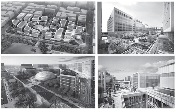 科学、合理、高效、环保的规划设计是园区的亮点。无论是园区总体规划、景观设计,还是单体的建筑设计,无不体现出规划合理、设计创新、优雅简洁与细节精美的特性,充分展现了LG的品牌文化。在总体规划上,始终坚持LG“高度协作的跨学科研究”的发展理念,为各个学科提供了灵活的楼宇和实验室设施。一条南北走向的城市公共绿道将园区一分为二,并将园区与城市公园相连。园区内另一条东西走向的线状公园则提供了更丰富的公共景观资源,鼓励员工更多的户外交流。在楼宇及空间设计上,还采用了诸多可持续发展设计策略,包括自遮阳外立面设计和一系列创新科技的使用,如:采用藻类立面板和通过脚步传感能量收集来发电;平屋面表层设置了太阳能光电板和植被覆盖,使用地源热泵系统进行供暖和制冷,等。这些都为客户提供了高品质、灵活和舒适的办公空间,以吸引和留住世界顶尖的科学家。