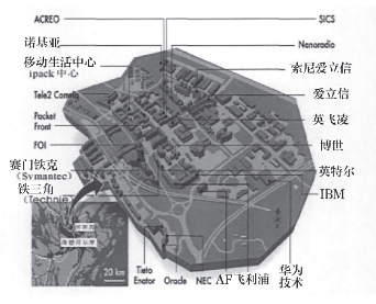目前,园区企业主要集中在电信、无线、微电子和软件四个领域。爱立信、诺基亚、IBM、HP、Oracle、Intel、Sun等大型跨国公司都在这里设立了生产基地或研发中心,我国的华为、中兴等也在此设有研发基地。[179]随着园区的不断发展和产业聚集,园区已经在电子、无线通信、IT等领域具有全球领先优势,被誉为“无线之谷”“移动谷”、移动通讯的“动力之源”等。园区取得成功的经验除了政府支持外,主要还有: