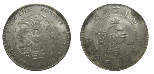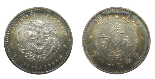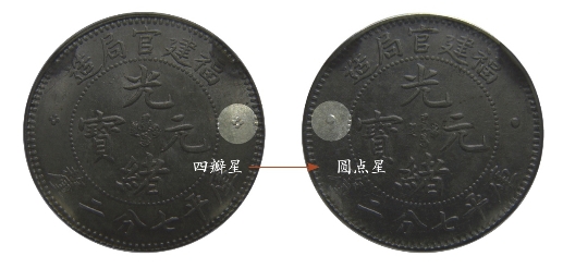光绪二十六年至二十九年(花星,1900-1903年),光绪三十年至三十一年(圆点星,1904-1905年),福建官办银元局铸。半角,一角,二角,有三等币值,民间俗称“官角”。