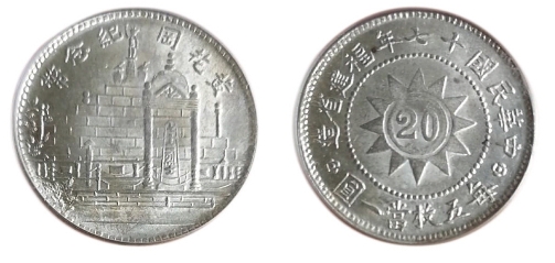 (四)黄花岗纪念币十七年贰角无砖版。铸造日期图案排列等均同壹角
