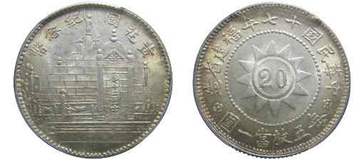 (五)黄花岗纪念币十七年贰角有砖己出头