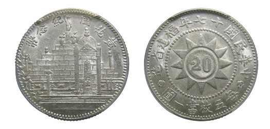 (六)黄花岗纪念币十七年贰角有砖己不出头