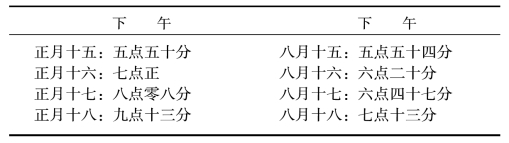 民国三十七年(1948年)杭州上元节和中秋节月出时间表(地方时)