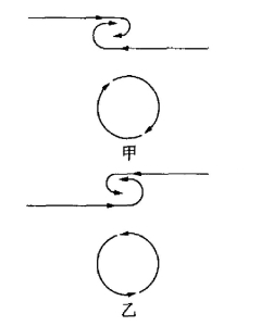 台风是一种热带旋风。凡是两种不同方向的气流或是流水遇到一起,便会成功旋流。旋流转动的方向,可以作顺钟向转,如图一甲,也可作逆钟向转,如图一乙。前者称为顺转,后者称为逆转。在台风范围以内,风向是逆转的。因为旋转的力量,就发生离心力。好像江河中的涡流,旋转便会使涡流中心的水凹下去,即涡心要比四边低一点。同样地,空气中的旋流,因为转动的关系,也会使中心气压降低。台风也是一种低气压。它的范围比起江河中的涡流,或是马路上能见到的旋风要大得多。江河中的涡流普通直径不过是几尺到几丈。台风的直径在热带内可自一百六十公里到三百二十公里,走到温带里还可以扩充到一千公里,和普通温带里的风暴一样庞大。