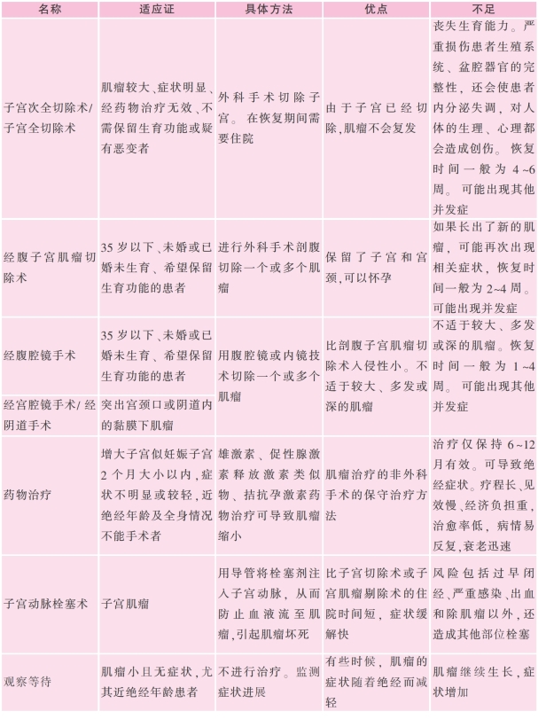 14 既往子宫肌瘤的治疗方法有哪些?各有什么优缺点?